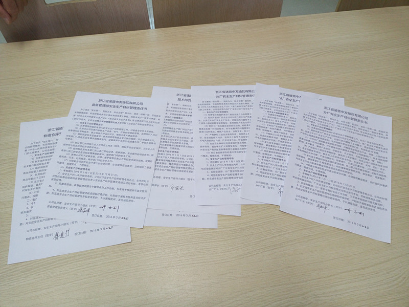 2016年3月22日公司首先与各分厂、部门负责人签订了分厂、部门安全生产目标管理责任书。