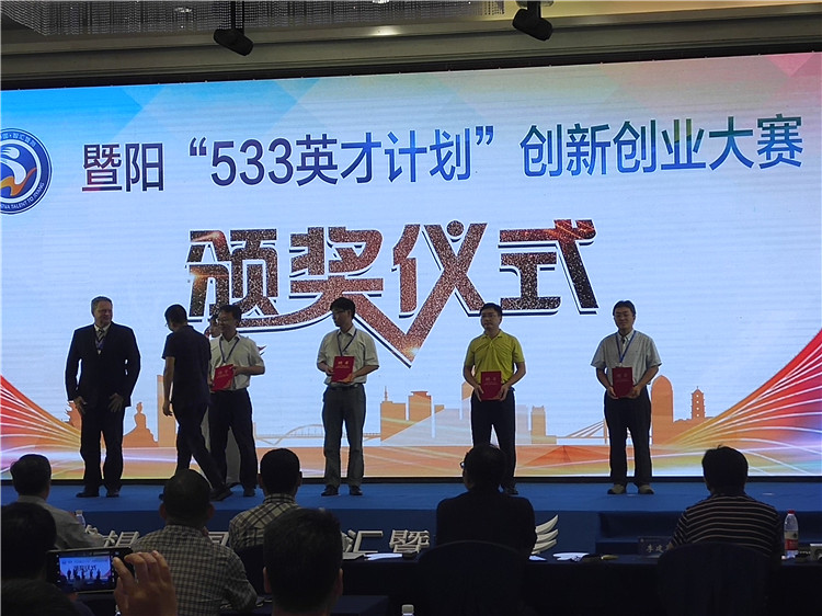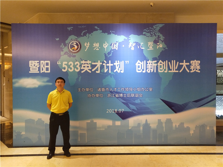 2018暨阳“533英才计划”,公司博士后工作站在站博士后祝剑虹一路过关斩将,通过初审、复审、专家评审三轮筛选,在全市107个国内外高层次人才项目中脱颖而出,闯入前八。在7月27日的暨阳“533英才计划”创新创业大赛中获得B类大奖,并被授予诸暨市“特聘专家”称号。